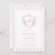 Pink Crest Monogram Baptism Invitation