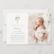 These beautiful Baptism or Christening floral invitations for girls feature a blush pink cross with watercolor ivory and white flowers, and your baby's photo.