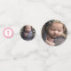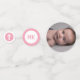 Cute table confetti for a baptism or christening in pink and white, with three of your own photos of you baby girl, and white and pink crosses with little hearts. Add your baby's initials in a rustic pink font against white.