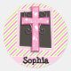 Pink Cross on Pink & Lime Green Stripes Classic Round Sticker