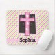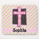 Pink Cross on Pink & Lime Green Stripes Mouse Mat
