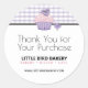 Thank your customers for their purchase and advertise your bakery, bistro, café, restaurant, catering business, home-based bakery, small business, or farmer’s market products with these fully customisable stickers. Use them on boxed baked goods, shopping bags, take out containers, to advertise your store grand opening, and more. Change the text areas to fit your needs.