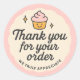Sweet, cheerful, and fully customizable — this bakery thank you sticker features a scalloped pink border, cream center, and a smiling cupcake illustration with sparkles. The message “Thank you for your order – WE TRULY APPRECIATE” adds warmth and charm, making it perfect for small business bakery stickers, home baker thank you stickers, and food business thank you stickers.