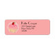 Cute cupcake design with a strawberry on top, pink frosting and some candy sprinkles.
