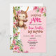 Pink Curious Monkey Safari Theme Birthday Invitation