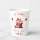 Cute personalised Berry First Birthday party paper cups printed with a watercolor cupcake with strawberries and a candle. The name is fully editable so that you can insert your little girlt's first name.