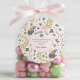 Custom adorable PINK Cute & Curvy Shamrocks round Favour Sticker - hand-drawn by Nathalie Portet.
