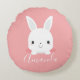 Pink Cute Little Bunny Rabbit with Custom Name Round Cushion