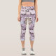 Pink cute orchid flowers and butterfly drawing capri leggings