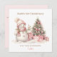 Christmas card with an adorable vintage snowman in pink for baby and little girls. Easily personalise this Christmas card with your own text. This Card is for a long text - Kate Eden Art.