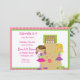 Start your celebration off with this adorable bowling party invite.It is for a girl's bowling party. it features a brunette haired girl at the edge of a bowling lane Next to her is a cute blonde haired girl holding a hot pink bowling ball in her hands. It is set on a light and dark pink striped background The centre rectangle is white outlined in lime green.. Look for the many other products in this line. ©Jessica Weible Illustrations
