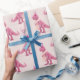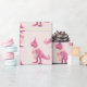 Pink cute t-rex dinasour with boa and party hat wrapping paper
