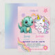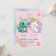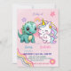 Pink Cute Unicorn dinosaurs rainbow Birthday party Invitation