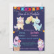 Pink Cute Unicorn dinosaurs rainbow Birthday party Invitation