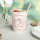 1st Birthday party paper cups with a cute happy unicorn, balloons, golden stars and clouds in soft shades of pink and beige. Cute design for first or any Birthday of a little girl. Easily personalise all the text including the number of the Birthday. - Kate Eden Art