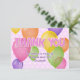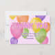 This fun and colourful birthday thank you card features the message "thank you" spelled out in realistic, whimsically arranged pink frosted cutout cookies surrounded by multicolor balloons - the image of two balloon shaped cutout cookies accents the back of the card - personalise with your message on the front - background is a pattern of small white polka dots on pale pink - by katz_d_zynes