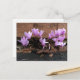 Postcard with photo of pink cyclamen hederifolium flowers in Autumn.