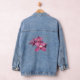 Denim jacket with photo of deep pink / red cymbidium orchid flowers.