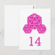 Did meeting your future spouse and everything leading up to your engagement feel like you rolled a twenty? If so, this geeky chic D20 Dice Wedding Table Number Postcard is perfect for you! Featuring a bigger twenty-sided D20 die and two smaller dice flanking it, this elegant yet nerdy table card in magenta is easy to customise with your wedding details. Click "Customise It" to find more personalisation options.