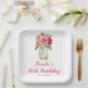 Pink Dahlias Mason Jar Birthday Party Paper Plate
