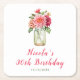 Pink Dahlias Mason Jar Birthday Party Square Paper Coaster