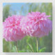TWO LARGE PINK DAHLIAS SIDE BY SIDE ARE FEATURED ON THESE COASTERS.