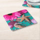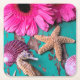 Pink Daises And Seahorse With Starfish Square Paper Coaster