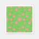 Pink Daisies and Bug Trails On Bright Green Napkin