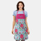 I painted these bright raspberry daisies with markers to bring joy and cheerfulness. They're on a light blue textured background. You can change the name of the person that is located on top of the apron, in light blue, over a part of raspberry pink.