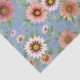 An original modern design featuring colourful bunches of coral pink, blush and peach African Daisies, aka Gazania, on a blue background.