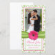 The text and wedding photo on this pink gerbera daisy spring green ribbon and floral damask wedding thank you photo cards are fully customisable. You can change both using the personalise options. For more extensive changes to the card, including changing the font, font colour, font size, text placement, photo size, or photo placement, choose the customise it option. This is a great thank you card for a spring or summer wedding with a pink and green gerber daisy flower theme. Pretty, bright, and cheerful. This card is currently customised for a wedding, but would also work great for any other special occasion. All you need to do is change the wording.