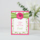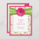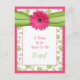 The text on this pink gerbera daisy with green floral damask and ribbon recipe card for the bride to be is fully customisable. You can change it using the personalise option. For more extensive changes to the postcard, including changing the background colour, font, font colour, or font layout, choose the customise option. This recipe card can be enclosed in the matching bridal shower invitation so that bridal shower guests can fill out the back with their favourite recipes and bring the card with them to the shower as a wedding keepsake for the bride to be. You could also use this in a birthday party invitation by changing the text on both the invitation and this card. The matching invitation is shown below. Note: This is a flat printed design without any 3D or raised embellishments.