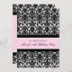 Custom 30th Birthday party invitations in elegant light blush pink, black and white classic floral damask pattern. Add your name and party details for a unique and stylish 30th birthday party invitation.