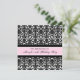 Custom 30th Birthday party invitations in elegant light blush pink, black and white classic floral damask pattern. Add your name and party details for a unique and stylish 30th birthday party invitation.