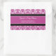 Baby shower thank you favour tag sticker in elegant bright fuchsia pink, black and white classic floral damask pattern. Customisable with your own text, contact us for a colour change. The perfect way to decorate your baby shower favours and thank your guests for being a part of your special day.