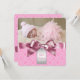 Elegant silver grey and pink damask with pretty pink bow baby girl photo baptism and christening invitation. This elegant pink damask photo christening and baptism invitation is easily customised for your event by simply adding your photo, event details, font style, font size & colour, and wording.