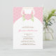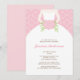 Beautiful bridal/wedding showers invitations featuring a vector illustration of a bride holding a flower bouquet on a classic damask or lace pattern pattern background.