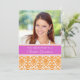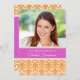 Bridal luncheon custom photo template invitations in elegant bright fuchsia pink, tangerine orange and white classic floral damask pattern, elegant and feminine, customisable with your shower details. Also available in thank you cards and invitations for the bridal party.