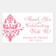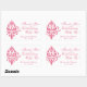 This rectangle sticker matches our Pink Damask Wedding Set perfectly! It is a pretty shade of pink in a classic, damask pattern. This could be used for wedding party favours and/or thank you gift tags.