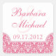 This square sticker matches our Pink Damask Wedding Set perfectly! It is a pretty shade of pink in a classic, damask pattern. This could be used as an envelope seal, for party favours, thank you gift tags or a gamut of other uses related to wedding festivities. Endless uses for this elegant design.