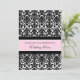 Elegant wedding vow renewal invitations in light pink, black and white floral damask pattern with fully customizable text to include your vow renewal ceremony details.