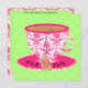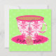 Pink Damask with Green Tea Cup Tea Party Birthday Invitation