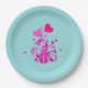 Pink Decorative Hearts with Swirls and Curls Paper Plate