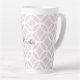 Enjoy your morning coffee or latte with a Pink Diamond Pattern Personalised Latte Mug. Latte mug design features a modern diamond and circle pattern and area you can personalise with your name against a light teal background.Additional gifts available with this design as well as a variety of colours.