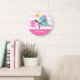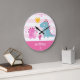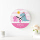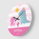 Pink Dinosaur Girl Nursery Custom Name Kawaii Cute Large Clock