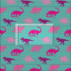 Pink Dinosaurs on Teal Fabric