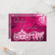 Invitaciones personalizadas, elegantes y a medida para fiestas de cumpleaños Sweet 16 en español para niñas. Hermosas invitaciones de Dulce Dieciseis en color rosa a doble cara para adolescentes, con una divertida bola de discoteca retro, imagen impresa glamurosa con strass, brillo de purpurina, lentejuelas y joyas, un carruaje/princesa real con corona/tiara y caballos sobre un fondo vibrante en rosa con luces blancas y destellos. En el reverso de las invitaciones hay una bonita nota musical y unos zapatos de tacón alto de aguja / zapatilla de cristal. Invitaciones mágicas, elegantes, con clase, lindas, femeninas, modernas, con colores de moda y tendencia. Estas invitaciones sofisticadas, con estilo y bonitas están decoradas/impresas en ambos lados. Invitaciones perfectas para una cena-baile, evento de baile o cualquier ocasión lujosa y opulenta. NOTA: Todas las invitaciones en Zazzle tienen imágenes impresas planas. Si necesitas ayuda para personalizar tu producto, por favor contáctame a través de mi tienda y estaré encantado de ayudarte.