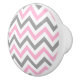 Pink, Dk Grey Wht Large Chevron ZigZag Pattern Ceramic Knob