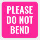 Minimalist, trendy, simple shipping / maliling business sticker with the text: please do not bend, in bright pink.