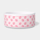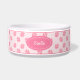 Pink dog paw print pattern with a pink badge that has a personalizable text area for the name of the pet or other custom text such as "food", "dinner" or "water" for example. The font is a lovely script font in white colour. Elegant yet classy design for anyone who likes pink or just want to add a pop of colour to a space.